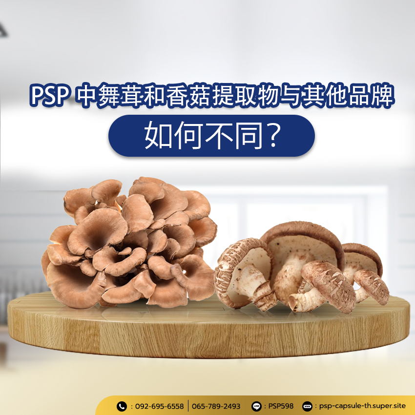 很多人都经常听说舞茸和香菇的名字。尤其是含有舞茸和香菇提取物的膳食补充剂,在膳食补充剂圈子里很受欢迎。因为它们是一种具有良好保健功效的蘑菇。那么PSP中的蘑菇提取物、舞茸和香菇与其他品牌有何不同?PSP提取的氨基蛋白多糖肽,分子非常小,可以快速被细胞吸收使得PSP的效果达到最高效率,5-7天即可看到结果。比如说伤口发炎,不仅能看到外部的伤口,还有肺、心脏、肾、肝、血管等细胞内部的炎症,也会得到修复。因此,PSP是一种安全性很高的膳食补充剂产品,因为服用PSP不会对身体任何器官产生副作用,这与其他品牌有明显的区别